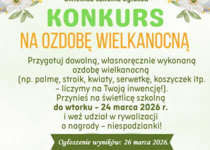 REGULAMIN SZKOLNEGO KONKURSU PLASTYCZNEGO „Dekoracja Wielkanocna” – rok szkolny 2025/2026 Organizatorem konkursu jest świetlica Szkoły